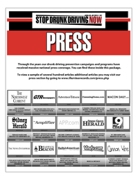 We can’t think of a better way to spend our days than keeping kids safe from drunk driving accidents. Our business is saving lives one town at a time. Stop Drunk Driving Now and Checkpoint Magazine are commercial vehicles that promote drunk driving awareness. When you advertise in, or subscribe to our online publications, your advertising dollars help us present our message to the young people in your community.